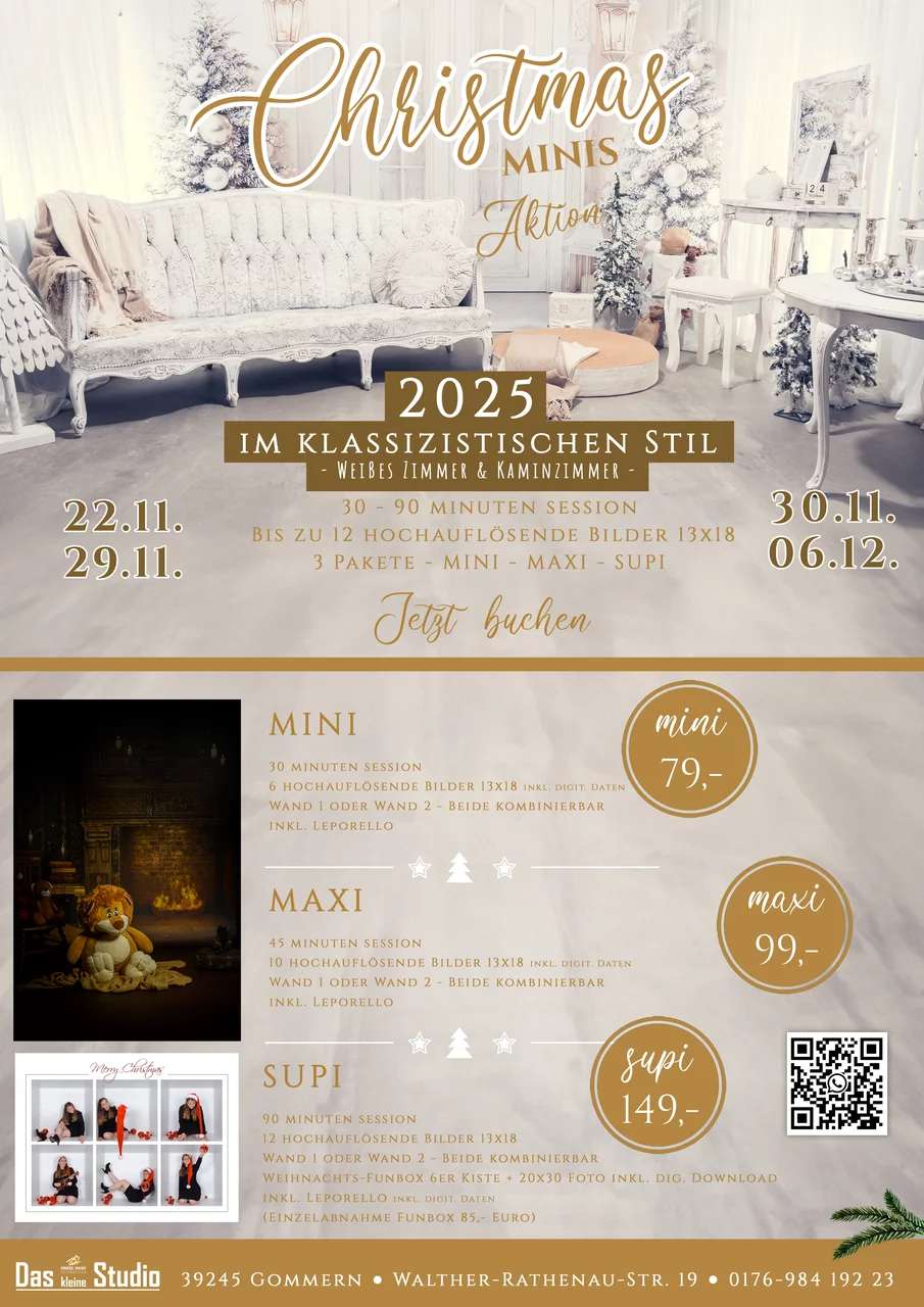 SUPI- Paket 149,- 90 Minuten Session 12 Hochauflösende Bilder 13x18 Wand 1 oder Wand 2 - Beide kombinierbar Christmas-Funbox 6er Kiste + 20x30 Foto inkl. dig. Download inkl. Leporello